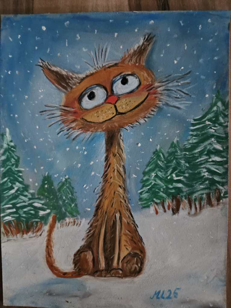 Gisela Mecking „Geheimnisvolle Botschaft“ Acrylin diesem Bild ist ein Text versteckt: wenn man das Bild umdreht und gegen ein Licht hält, wird der Text sichtbar